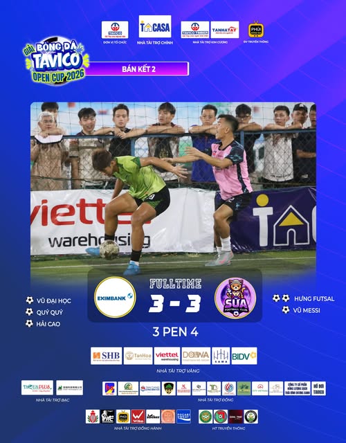 Chiều ngày 16/04/2026, loạt trận bán kết Tavico Open Cup 2026 đã diễn ra đầy kịch tính, chính thức xác định hai đội bóng xuất sắc giành vé vào trận chung kết.